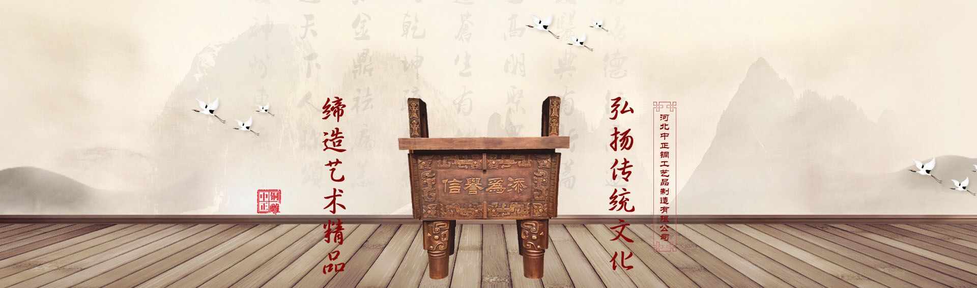 河北中正銅工藝品制造有限公司具有優(yōu)越的地理位置,離107國(guó)道10公里,離天津海港160公里,交通便利。追求卓越、開(kāi)拓創(chuàng)新、重合同、守信譽(yù)、讓客戶(hù)滿(mǎn)意的經(jīng)營(yíng)理念。河北中正銅工藝品制造有限公司竭誠(chéng)為國(guó)內(nèi)外客戶(hù)提供優(yōu)質(zhì)的服務(wù),愿與新老客戶(hù)攜手共創(chuàng)美好未來(lái)。